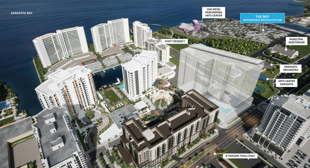 The Quay will include up to 695 residential units, 175 hotel rooms, 38,922 square feet of office space and 189,050 square feet of commercial space for shopping and dining all designed to be an extension of downtown Sarasota.